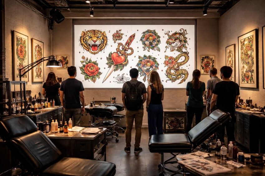 Un des éléments qui transforme véritablement l’atmosphère durant un flash day est l’utilisation d’un écran de projection. Cet outil innovant permet de présenter les œuvres sous un angle différent, offrant aux visiteurs une visualisation immersive des créations. En projetant des images de tattoos réalisés, des inspirations ou des choix design, l’écran engage les participants à plonger dans l’univers artistique des tatoueurs.